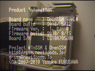 | [F12] | Product Infomation | 基板名、バージョン、シリアル番号などの表示 |