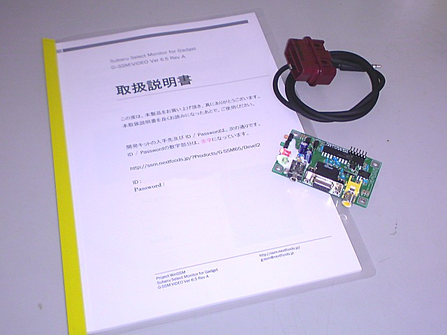 Subaru Select Monitor for Gadget G-SSM:VIDEO Ver 6.5(以下、G-SSMと呼ぶ)は、自動車のエンジン回転数、車速、瞬間燃費、空気量 (MAF : Mass Air Flow)、空燃比(AFR : Air Flow Rate)、シフトポジション(マニュアル車の場合)、ブースト圧、水温、吸気温、バッテリー電圧、スロットル開度、エンジンの点火タイミング、ノッキング状態をビデオ出力する装置です。ビデオ出力の映像は、お手持ちのカーナビや車載用液晶モニタ(インダッシュ/オンダッシュ、バックミラー、フリップダウン、サンバイザーモニタなど)に映すことができます。これらをお持ちでない方は、あらかじめご用意ください。