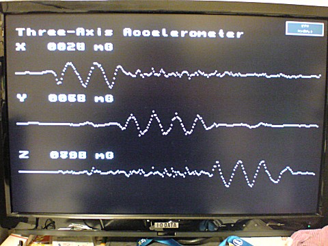 X, Y, Z軸 ±2Gの加速度をテキストとグラフで表示する